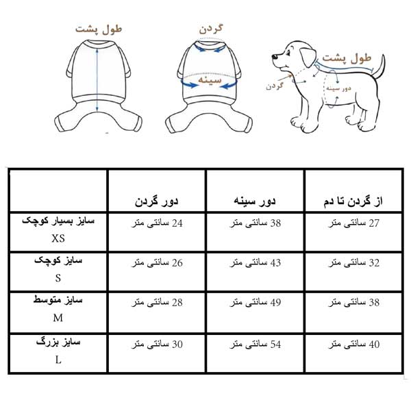 | انتخاب سایز | بزرگ L, بسیار کوچک XS, کوچک S, متوسط M |