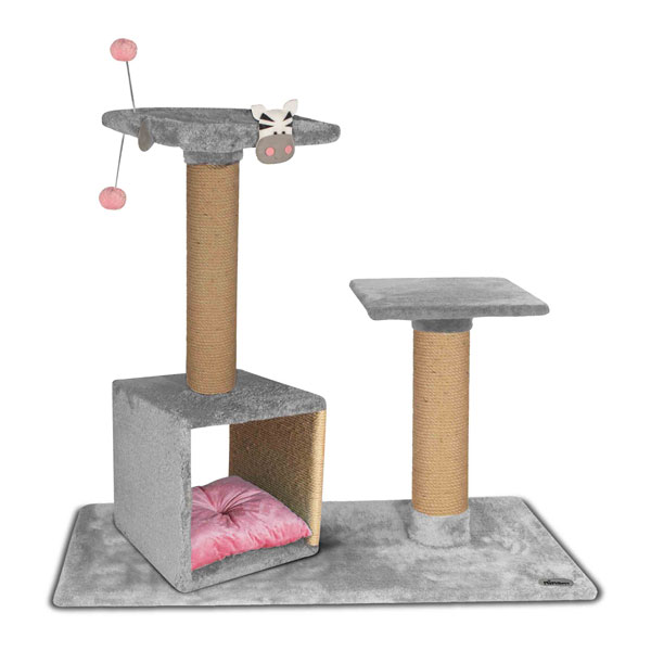 درخت گربه نیناپت مدل B(بی) سه جای خواب 2 اسکرچر بسیار زیبا می باشد. این محصول دارای باکس و چند جای خواب متفاوت می باشد. میله های لوله ای پوشیده از کنف محکم برای اسکرچ کردن می باشد. در نظر داشته باشید این قطعات به دلیل مصزفی بودن در صورت خراب شدن از طرف شرکت نینا پت تعویض می گردنند. درخت گربه نینا پت دارای موش حاوی کت نیپ و گوله پشمالوی فنر دار نیز می باشد. ضمنا درخت گربه نینا پت یک خانه بسیاز جذاب برای پشمالوهای دوست داشتنی است که به همراه آن یک جایزه از طرف نیناپت پاپیون به همراه میله بازی برای شما ارسال می شود.