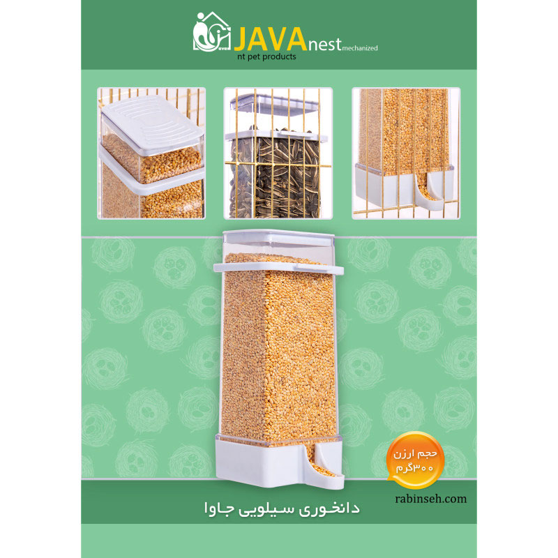 دانخوری سیلویی جاوا  مناسب پرندگانی نظیر فنچ, مرغ عشق, کوتوله, قناری و….. می باشد. حجم محفظه این دانخوری به میزان 300 گرم ارزن می باشد. قابل شستشو و کاملا بهداشتی می باشد و با توجه به طراحی محصول روی انواع قفس ها نصب می شود. این دانخوری بدون نیاز به جدا کردن از قفس قابل پر کردن می باشد.