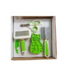 این محصول از یک عدد برس دو طرفه، یک عدد شانه ی مستطیلی و پهن و یک ماساژور، یک شانه کوچک و یک ناخن گیر تشکیل شده است.