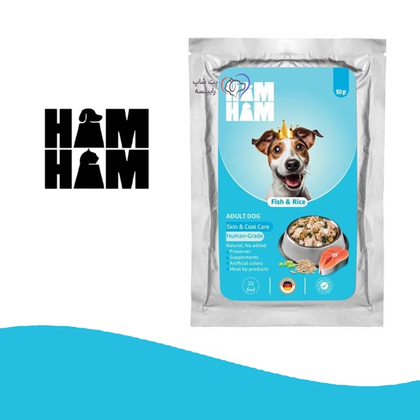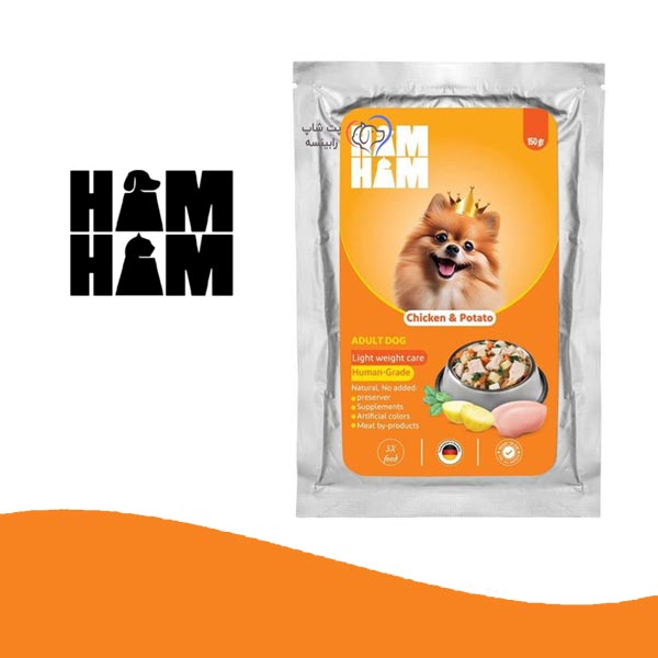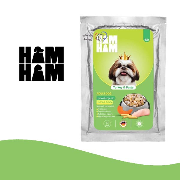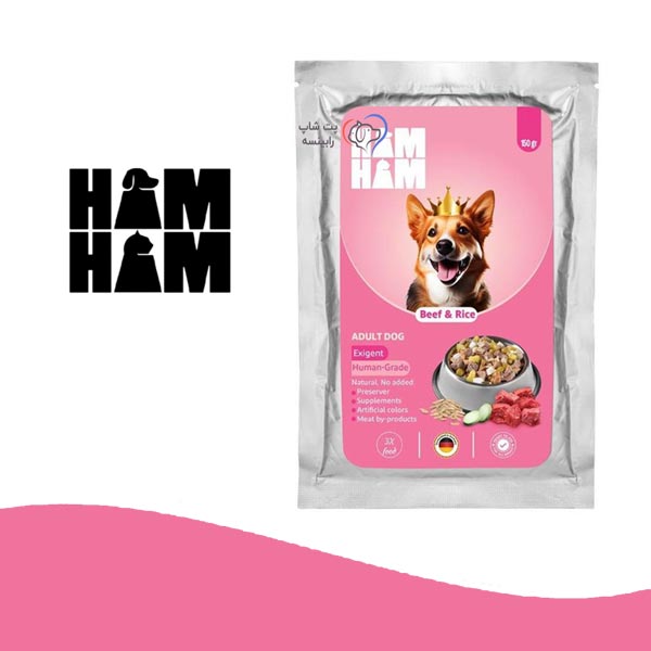 پوچ ارگانیک سگ هام هام در چهار طعم مختلف 150 گرمی ( 100% طبیعی )