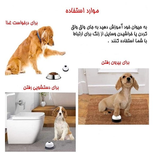 شما میتوانید به سگ ، گربه و دیگر حیوانات خود آموزش بدهید برای درخواست غذا ، بیرون رفتن یا نیاز به دستشویی از زنگ آموزشی استفاده کنند .