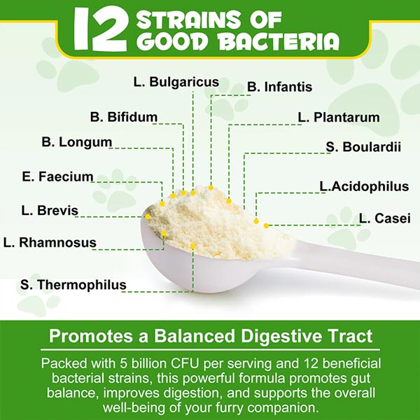 پودر پروبیوتیک سگ اویمال ایرلند 120 گرم با افزایش تعداد باکتری های مفید در روده، فرایند تجزیه مواد غذایی را تسریع می کند و از بروز اسهال و نفخ جلوگیری می نماید.
