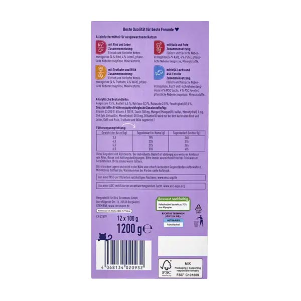 | طعم | ماهی سالمون و قزل الا / گوشت گاو و جگر / گوشت شکار و بوقلمون / گوشت گوساله و بوقلمون |