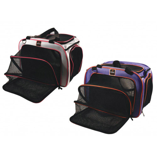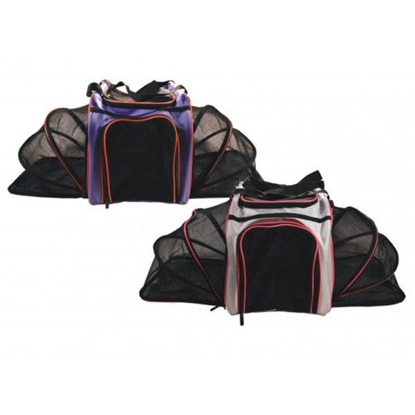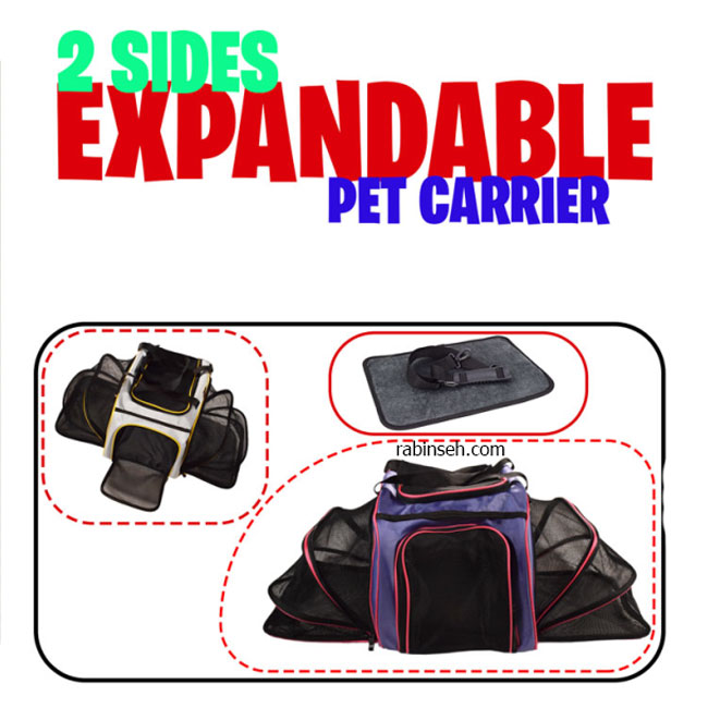 همانطور که از اسم این کیف بر می آید در دو طرف آن فضای آکاردئونی باز شونده ای وجود دارد که فضای بیشتری را به حیوان محبوب شما می دهد و در بالا و طرف جلو درب های توری مانند وجود دارد که درهر حالت به تهویه کیف کمک می کند.
